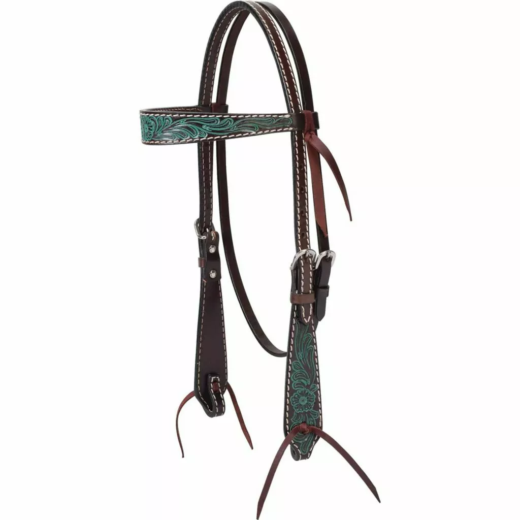 Weaver Leather 5/8 in. Turquoise Cross Floral-Carved Browband Headstall, 45-0142