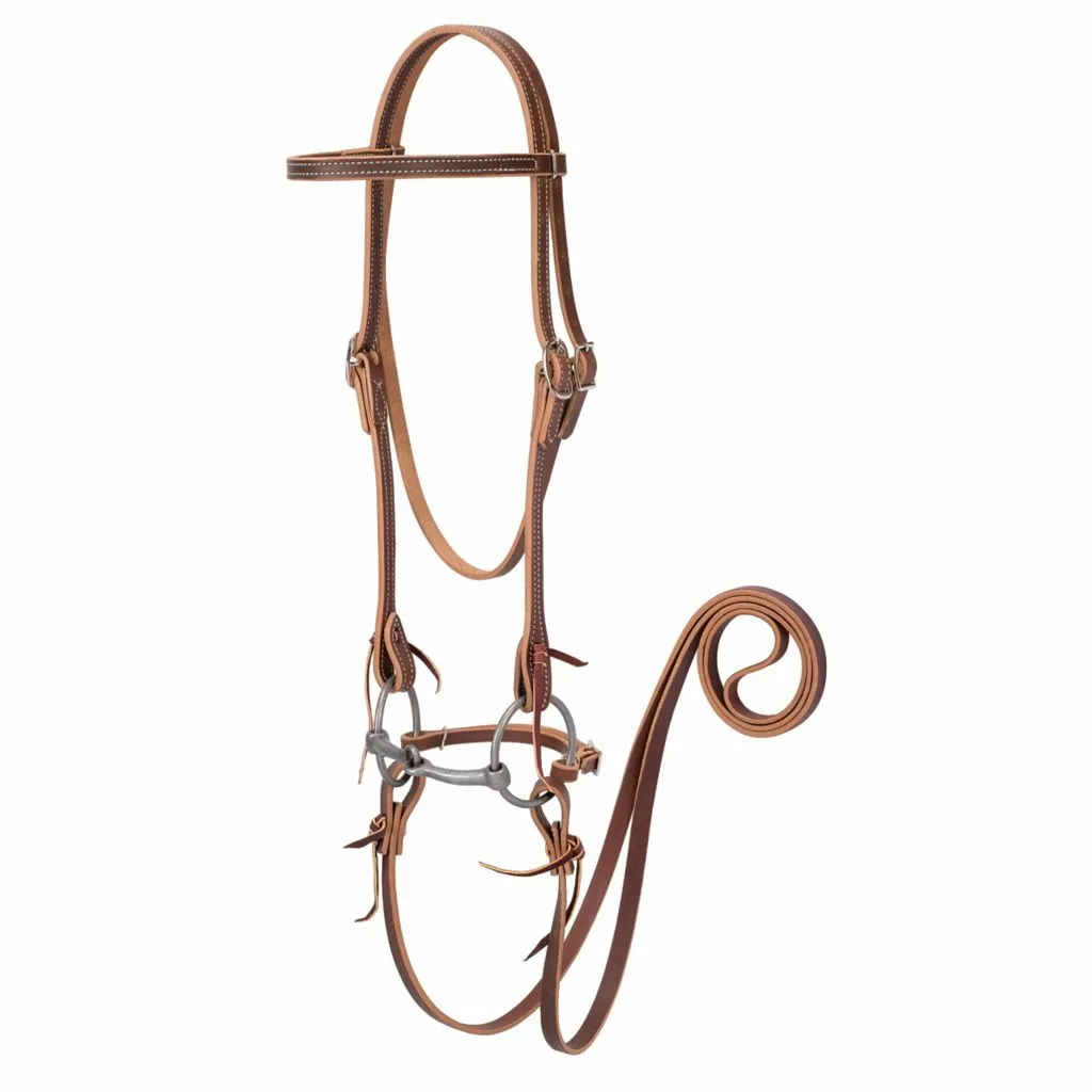 Weaver Leather Brow-band Bridle with Double Cheek Buckles, 7 ft. Chicago Screw Reins and Snaffle Bit, 5/8 in. Leather, 20-0361