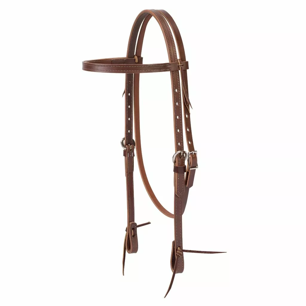 - 5/8 in. doubled and stitched, brown latigo leather headstall