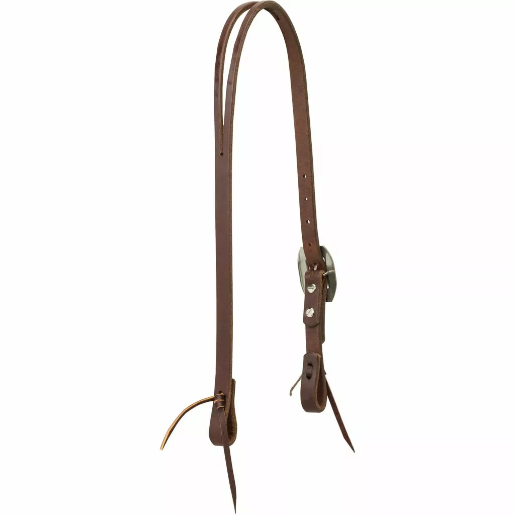 - Split ear headstall includes antique nickel-plated hardware with enamel inlay